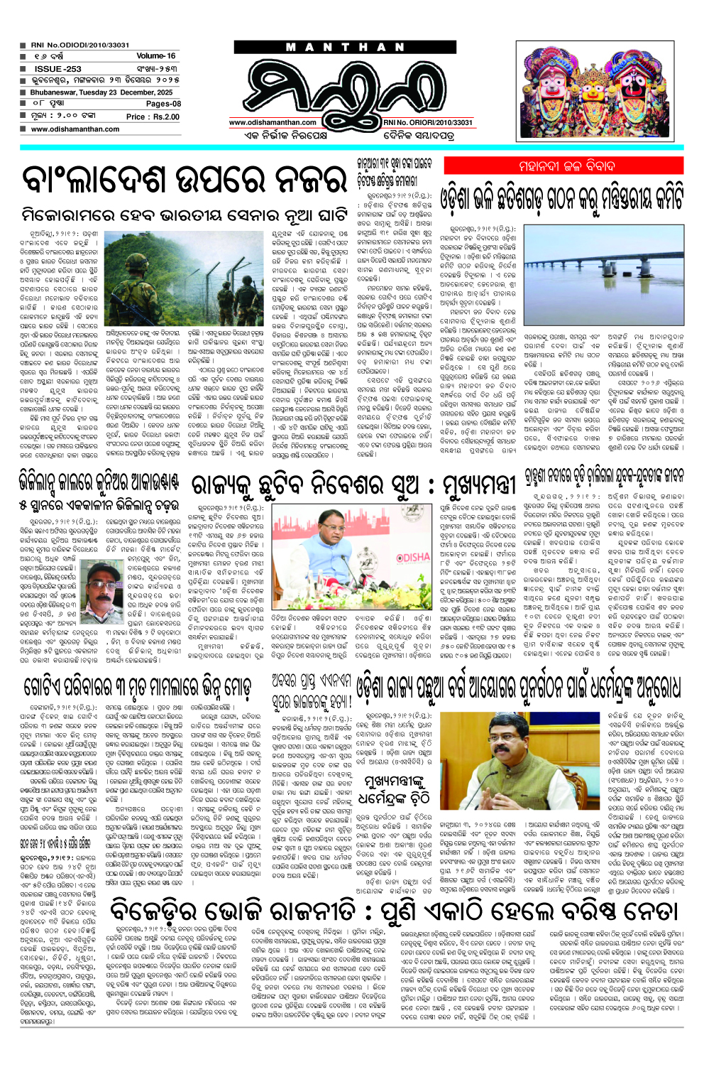 E-Paper 23-12-2025 MANTHAN December 23, 2025 Spread the love 1_compressedDownload About the Author MANTHAN Administrator "ମନ୍ଥନ" ଏକ ନିର୍ଭୀକ ଓ ନିରପେକ୍ଷ ଦୈନିକ ଓଡ଼ିଆ ସମ୍ବାଦ ପତ୍ରର ଡିଜିଟାଲ ତଥା ୱେବ୍ ସାଇଟ୍ ଅଟେ ଏଥିରେ ଆପଣ ଦୈନିକ ସମ୍ବାଦ ପତ୍ରର ପିଡିଏଫ୍ ପାଇ ପାରିବେ। Visit Website View All Posts Post Views: 30 Post navigation Previous: ୨୫ରୁ ୩୧ ପର୍ଯ୍ୟନ୍ତ ଭାରତ ରତ୍ନ ଅଟଳ ବିହାରୀ ବାଜପେୟୀ ସ୍ମୃତି ଦ୍ଵିତୀୟ T20 କ୍ରିକେଟ ଟୁର୍ଣ୍ଣାମେଣ୍ଟNext: Gurukul Student Chinmayee Pashupalak wins National Champion Title Leave a Reply Cancel replyYour email address will not be published. Required fields are marked *Comment * Name * Email * Website Save my name, email, and website in this browser for the next time I comment. Related Stories E-Paper 5-2-2026 MANTHAN February 5, 2026 0 E-Paper 4-2-2026 MANTHAN February 4, 2026 0 E-Paper 3-1-2026 MANTHAN February 3, 2026 0