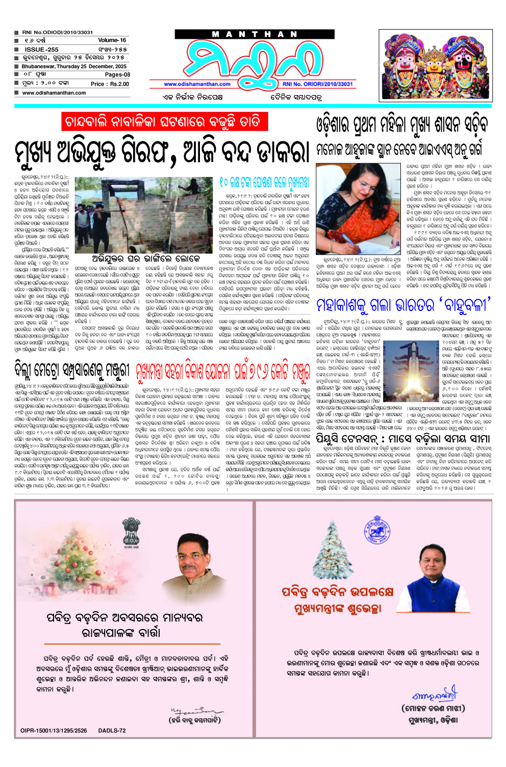 E-Paper 25-12-2025 MANTHAN December 25, 2025 Spread the love 1_compressedDownload About the Author MANTHAN Administrator "ମନ୍ଥନ" ଏକ ନିର୍ଭୀକ ଓ ନିରପେକ୍ଷ ଦୈନିକ ଓଡ଼ିଆ ସମ୍ବାଦ ପତ୍ରର ଡିଜିଟାଲ ତଥା ୱେବ୍ ସାଇଟ୍ ଅଟେ ଏଥିରେ ଆପଣ ଦୈନିକ ସମ୍ବାଦ ପତ୍ରର ପିଡିଏଫ୍ ପାଇ ପାରିବେ। Visit Website View All Posts Post Views: 29 Post navigation Previous: Gurukul Student Chinmayee Pashupalak wins National Champion TitleNext: 26-12-2025 Leave a Reply Cancel replyYour email address will not be published. Required fields are marked *Comment * Name * Email * Website Save my name, email, and website in this browser for the next time I comment. Related Stories E-Paper 5-2-2026 MANTHAN February 5, 2026 0 E-Paper 4-2-2026 MANTHAN February 4, 2026 0 E-Paper 3-1-2026 MANTHAN February 3, 2026 0