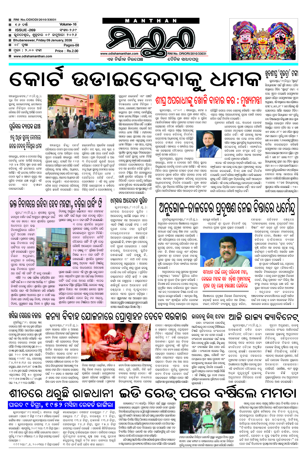 E-Paper 9-01-2025 MANTHAN January 9, 2026 Spread the love 1_compressedDownload About the Author MANTHAN Administrator "ମନ୍ଥନ" ଏକ ନିର୍ଭୀକ ଓ ନିରପେକ୍ଷ ଦୈନିକ ଓଡ଼ିଆ ସମ୍ବାଦ ପତ୍ରର ଡିଜିଟାଲ ତଥା ୱେବ୍ ସାଇଟ୍ ଅଟେ ଏଥିରେ ଆପଣ ଦୈନିକ ସମ୍ବାଦ ପତ୍ରର ପିଡିଏଫ୍ ପାଇ ପାରିବେ। Visit Website View All Posts Post Views: 23 Post navigation Previous: 7-1-2025Next: 10-1-2025 Leave a Reply Cancel replyYour email address will not be published. Required fields are marked *Comment * Name * Email * Website Save my name, email, and website in this browser for the next time I comment. Related Stories E-Paper 5-2-2026 MANTHAN February 5, 2026 0 E-Paper 4-2-2026 MANTHAN February 4, 2026 0 E-Paper 3-1-2026 MANTHAN February 3, 2026 0