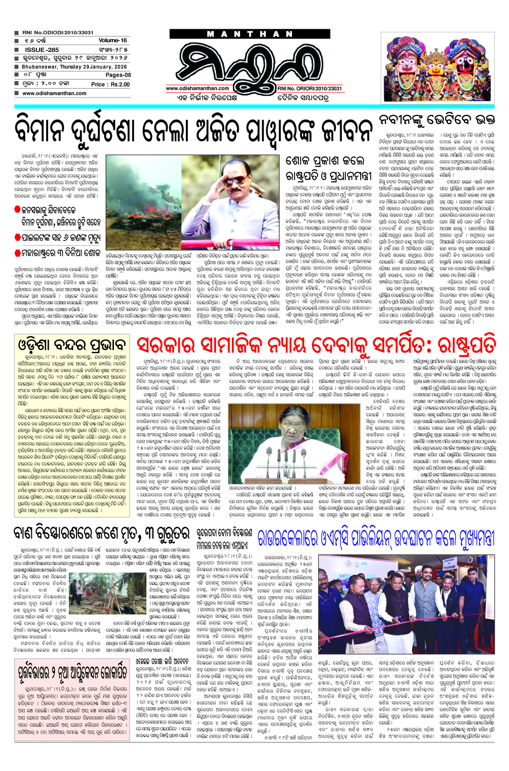E-Paper 29-01-2026 MANTHAN January 29, 2026 Spread the love 29_compressedDownload About the Author MANTHAN Administrator "ମନ୍ଥନ" ଏକ ନିର୍ଭୀକ ଓ ନିରପେକ୍ଷ ଦୈନିକ ଓଡ଼ିଆ ସମ୍ବାଦ ପତ୍ରର ଡିଜିଟାଲ ତଥା ୱେବ୍ ସାଇଟ୍ ଅଟେ ଏଥିରେ ଆପଣ ଦୈନିକ ସମ୍ବାଦ ପତ୍ରର ପିଡିଏଫ୍ ପାଇ ପାରିବେ। Visit Website View All Posts Post Views: 10 Post navigation Previous: ଓଡ଼ିଶା ରାଜ୍ୟସଭା ନିର୍ବାଚନରେ ନୂଆ ସମୀକରଣ: ଚର୍ଚ୍ଚାର କେନ୍ଦ୍ରବିନ୍ଦୁରେ ଡ଼ା. ପବିତ୍ର ମୋହନ ସାମନ୍ତରାୟNext: ୧୯ଜଣ ଖେଳାଳିଙ୍କ ୨୩ଟି ପଦକ ହାସଲ, ବ୍ରହ୍ମପୁର ବିଧାୟକଙ୍କ ଦ୍ଵାରା ସମ୍ବର୍ଦ୍ଧିତ Leave a Reply Cancel replyYour email address will not be published. Required fields are marked *Comment * Name * Email * Website Save my name, email, and website in this browser for the next time I comment. Related Stories E-Paper 5-2-2026 MANTHAN February 5, 2026 0 E-Paper 4-2-2026 MANTHAN February 4, 2026 0 E-Paper 3-1-2026 MANTHAN February 3, 2026 0