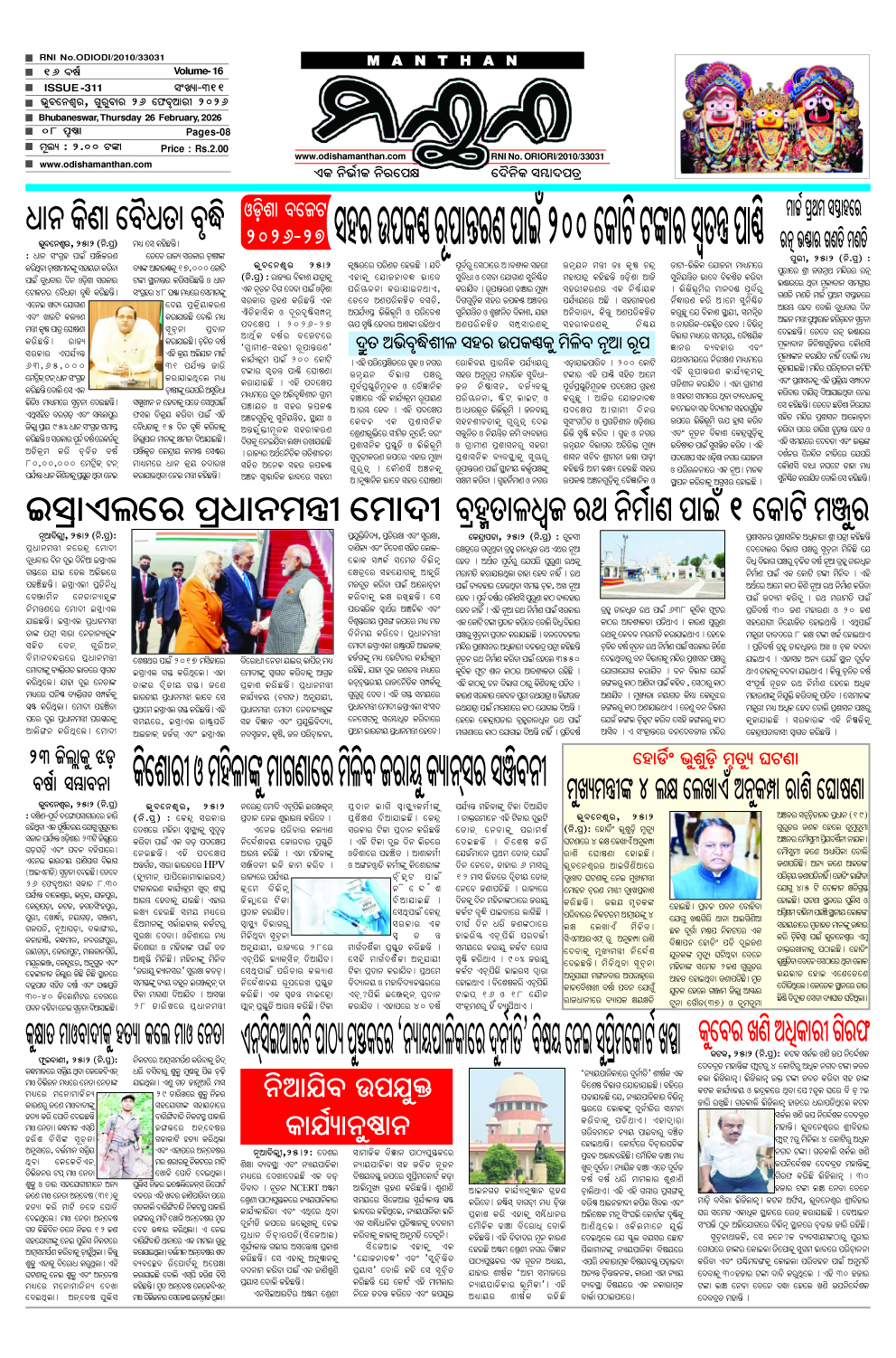 E-Paper 26-2-2026 MANTHAN February 26, 2026 Spread the love 1_compressedDownload About the Author MANTHAN Administrator "ମନ୍ଥନ" ଏକ ନିର୍ଭୀକ ଓ ନିରପେକ୍ଷ ଦୈନିକ ଓଡ଼ିଆ ସମ୍ବାଦ ପତ୍ରର ଡିଜିଟାଲ ତଥା ୱେବ୍ ସାଇଟ୍ ଅଟେ ଏଥିରେ ଆପଣ ଦୈନିକ ସମ୍ବାଦ ପତ୍ରର ପିଡିଏଫ୍ ପାଇ ପାରିବେ। Visit Website View All Posts Post Views: 2 Post navigation Previous: 25-2-2026Next: 27-2-2026 Leave a Reply Cancel replyYour email address will not be published. Required fields are marked *Comment * Name * Email * Website Save my name, email, and website in this browser for the next time I comment. Related Stories E-Paper 27-2-2026 MANTHAN February 27, 2026 0 E-Paper 25-2-2026 MANTHAN February 25, 2026 0 E-Paper 24-2-2026 MANTHAN February 24, 2026 0