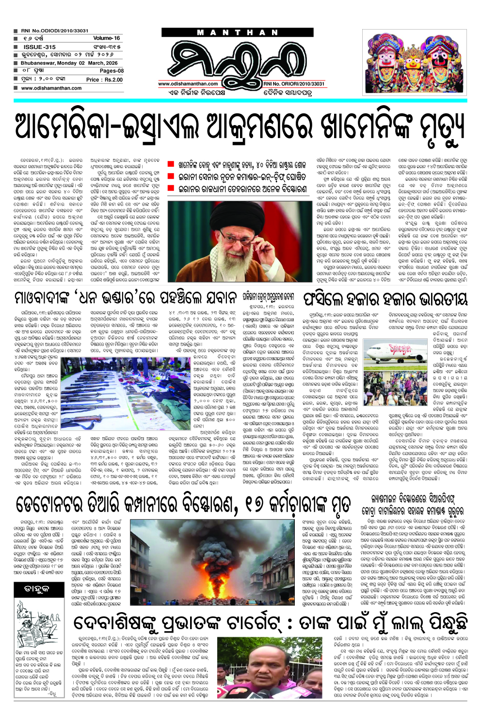 E-Paper 2-3-2026 MANTHAN March 2, 2026 Spread the love 1_compressedDownload About the Author MANTHAN Administrator "ମନ୍ଥନ" ଏକ ନିର୍ଭୀକ ଓ ନିରପେକ୍ଷ ଦୈନିକ ଓଡ଼ିଆ ସମ୍ବାଦ ପତ୍ରର ଡିଜିଟାଲ ତଥା ୱେବ୍ ସାଇଟ୍ ଅଟେ ଏଥିରେ ଆପଣ ଦୈନିକ ସମ୍ବାଦ ପତ୍ରର ପିଡିଏଫ୍ ପାଇ ପାରିବେ। Visit Website View All Posts Post Views: 1 Post navigation Previous: 27-2-2026 Leave a Reply Cancel replyYour email address will not be published. Required fields are marked *Comment * Name * Email * Website Save my name, email, and website in this browser for the next time I comment. Related Stories E-Paper 27-2-2026 MANTHAN February 27, 2026 0 E-Paper 26-2-2026 MANTHAN February 26, 2026 0 E-Paper 25-2-2026 MANTHAN February 25, 2026 0