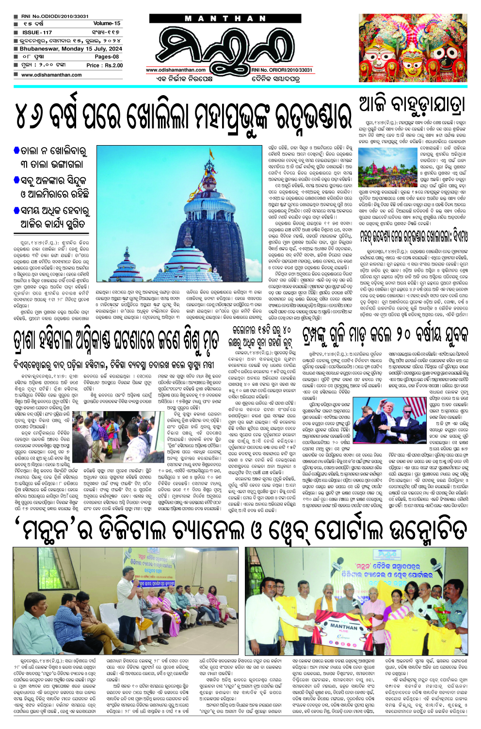 Spread the love 1_compressed-1Download Post Views: 320 Post navigation Previous 13.07.2024Next ମହା ଆଡ଼ମ୍ବରରେ ନୂଆ ରୂପରେ ସାମ୍ନାକୁ ଆସିଲା ଦୈନିକ ଖବରକାଗଜ ମନ୍ଥନ Leave a Reply Cancel replyYour email address will not be published. Required fields are marked *Comment * Name * Email * Website Save my name, email, and website in this browser for the next time I comment. More Stories E-Paper 11-10-2025 October 11, 2025 MANTHAN E-Paper 10-10-2025 October 10, 2025 MANTHAN E-Paper 9-10-2025 October 9, 2025 MANTHAN